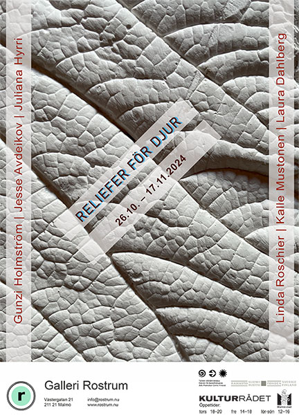 - Group show "Reliefs for Animals" in Rostrum Gallery, Malmö, Sweden October 26. to November 17, 2024. Together with